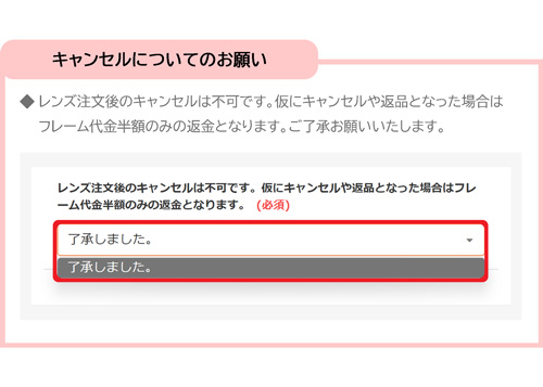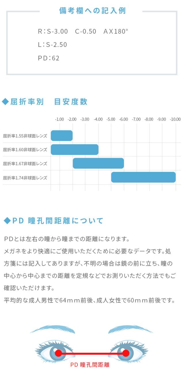 ご購入のフレームとレンズ、度数の兼ね合いによって、ご満足いただける仕上がりにならないと判断した場合には別のレンズをご提案させていただく場合があります。