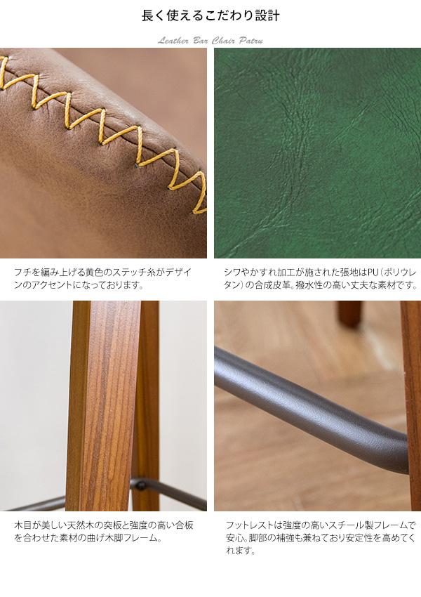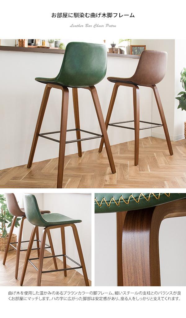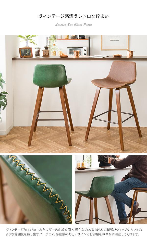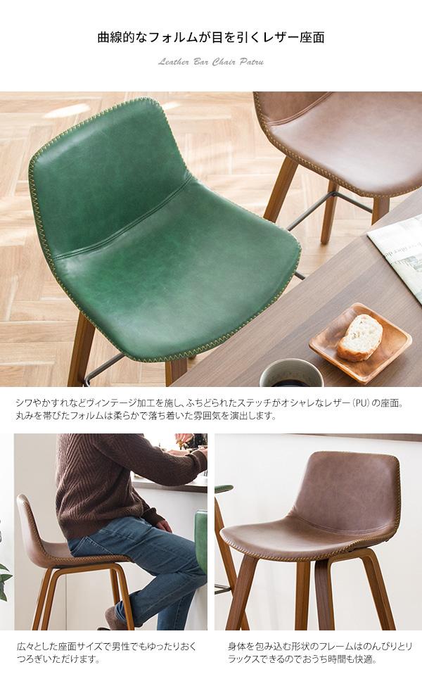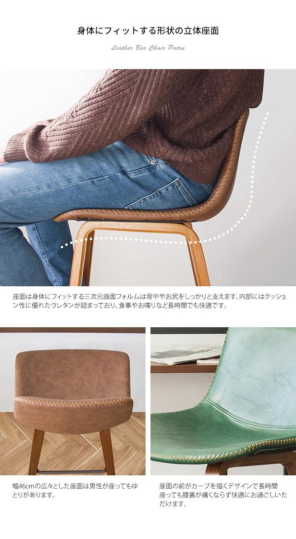 シワやかすれなどヴィンテージ加工が施された張地と、身体に沿ってゆったり座れる曲線フォルム、温かみのある曲げ木脚が特徴のバーチェア