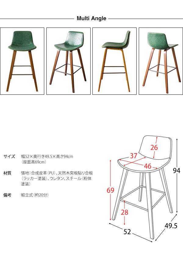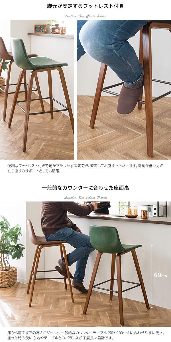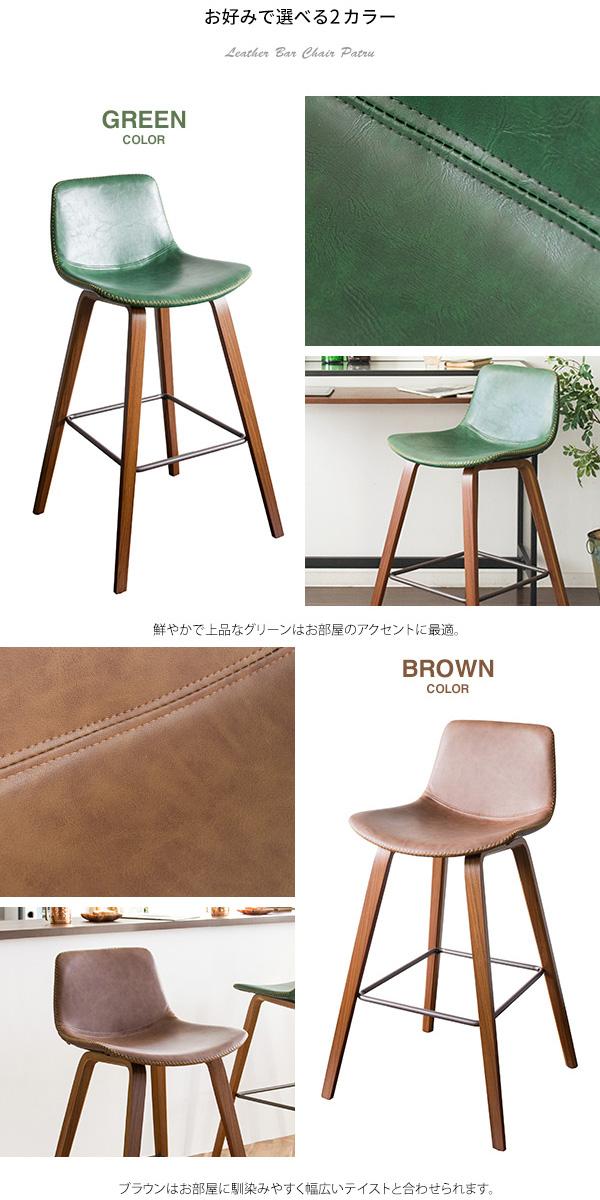 PU-BC 【2脚セット】 カウンターチェア ハイチェア ブラウン色/2色ご用意。 幅52×奥行き49.5×高さ94cm座面高 69cm