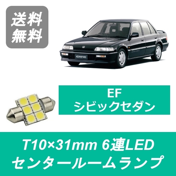 送料無料 T10×31mm 6連 LED センタールームランプ ホンダ EF1 EF2 EF3 シビック セダン D15B B16A