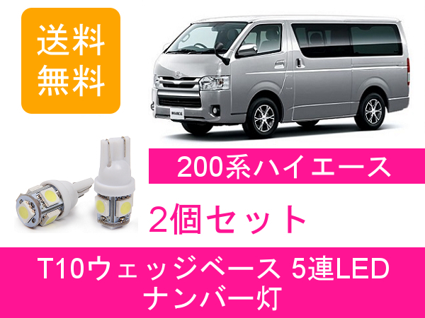 送料無料 T10 5連 LED ナンバー灯 トヨタ ハイエース 200系