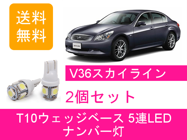 送料無料 T10 5連 LED ナンバー灯 日産 V36 スカイライン CKV36 NV36 KV36 PV36 VQ25DE VQ35HR VQ37VHR