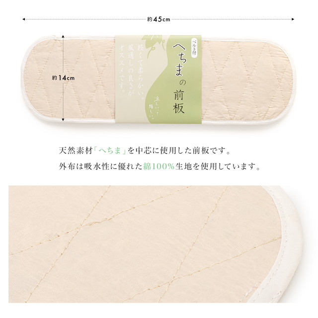天然素材の「へちま」を使用した通気性抜群の前板です。