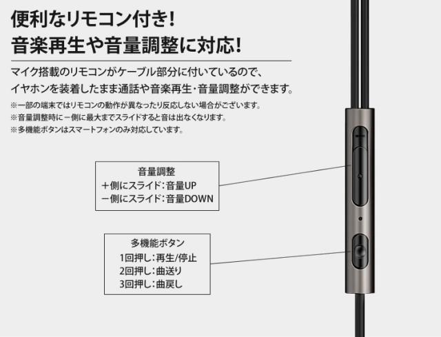 マイク搭載のリモコンがケーブル部分に付いているので、イヤホンを装着したまま通話や音楽再生・音量調整ができます。