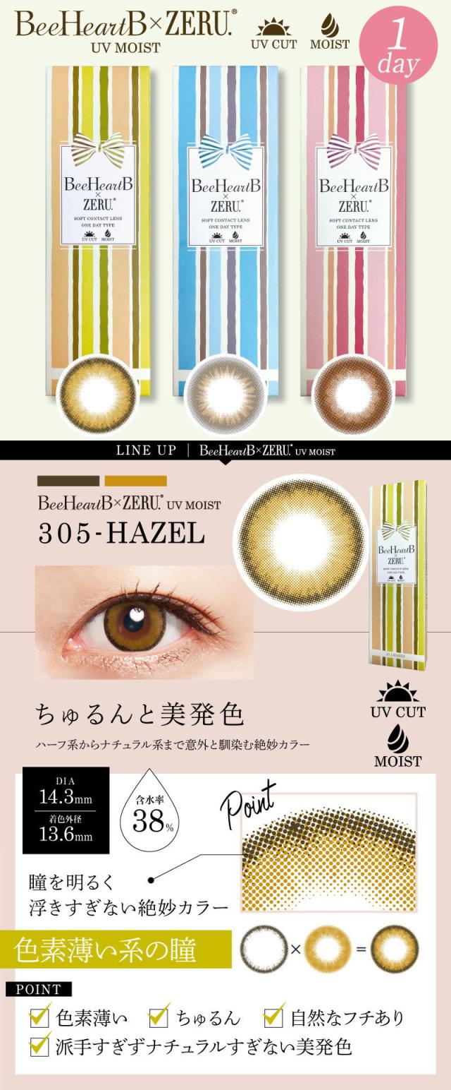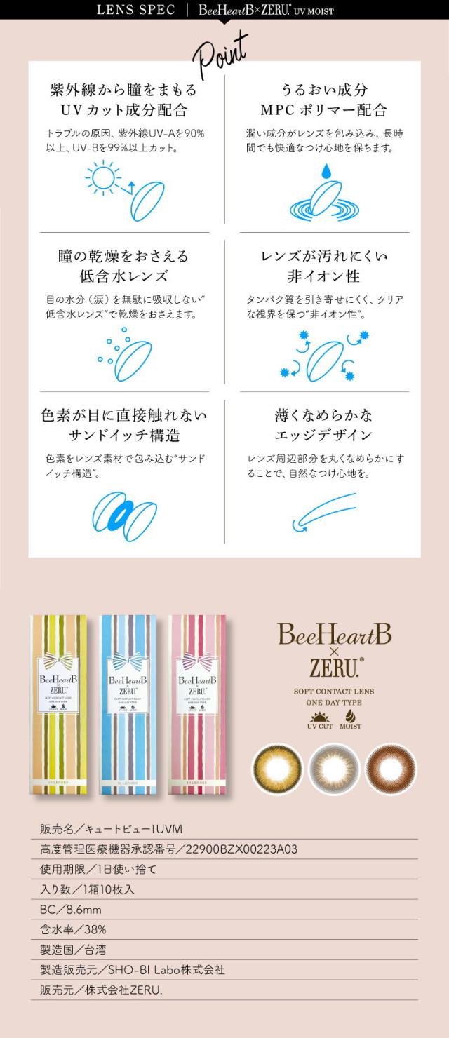 カラコン ビーハートビー ワンデー by ゼル UV Moist 1箱10枚 BeeHeartB 1day by ZERU. 1日使い捨て ワンデー フチぼかし 裸眼風 ナチュラル 自然 big_bc