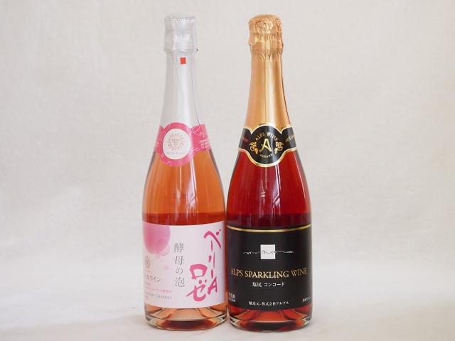 鮮やかなロゼワイン2本セット(山梨県産マスカット・ベーリーA 酵母の泡やや辛口 信州産塩尻コンコードやや甘口 ) 720ml×2本