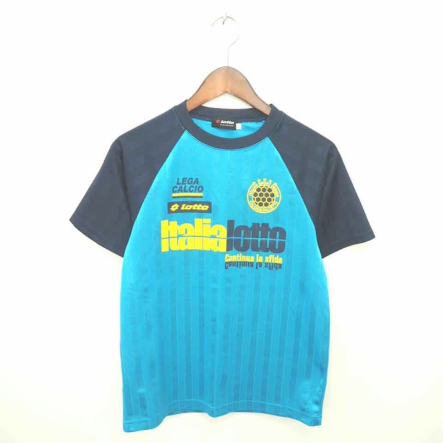 【中古】ロット lotto 子供服 国内正規品 Tシャツ カットソー 丸首 英字 ラグランスリーブ 半袖 160 青 ライトブルー