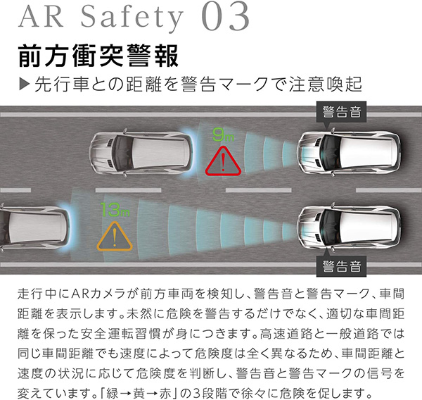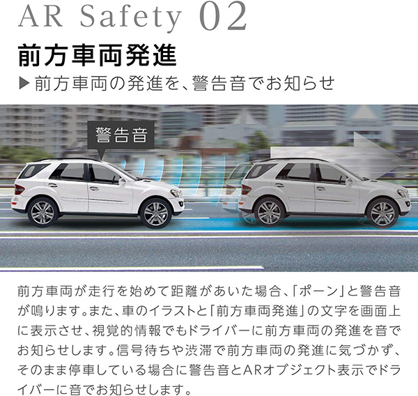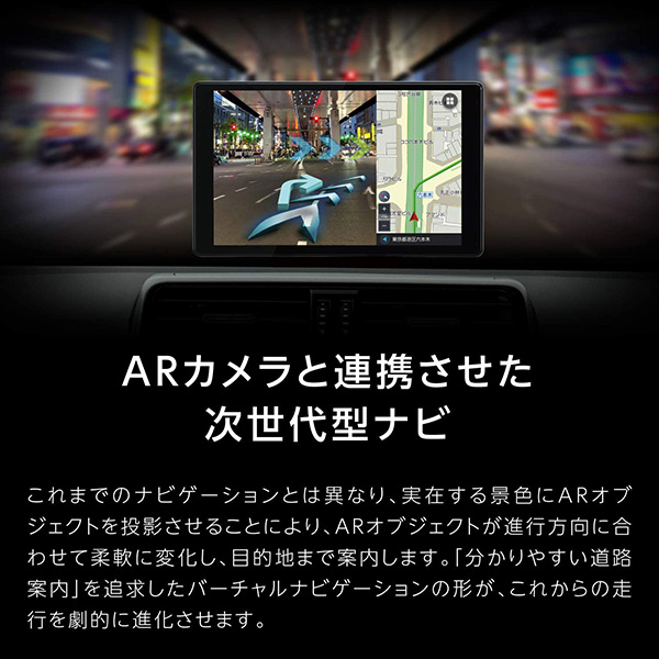これまでのナビゲーションとは異なり、実在する景色にARオブジェクトを投影させることにより、ARオブジェクトが進行方向に合わせて柔軟に変化し、目的地まで案内します。「分かりやすい道路案内」を追求したバーチャルナビゲーションの形が、これからの走行を劇的に進化させます。