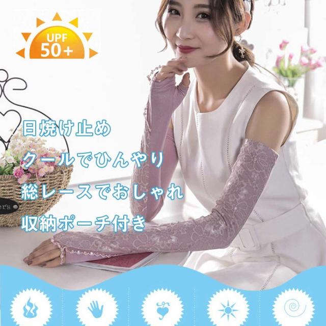アームカバー レース UVカット 手袋 ロング レディース 滑り止め スマホ対応 ひんやり 冷感 薄手 速乾 日焼け止め 花柄 おしゃれ タトゥー隠し 収納ポーチ付き 指なし 指穴付き 五本指 腕カバー 2枚1組 メール便送料無料