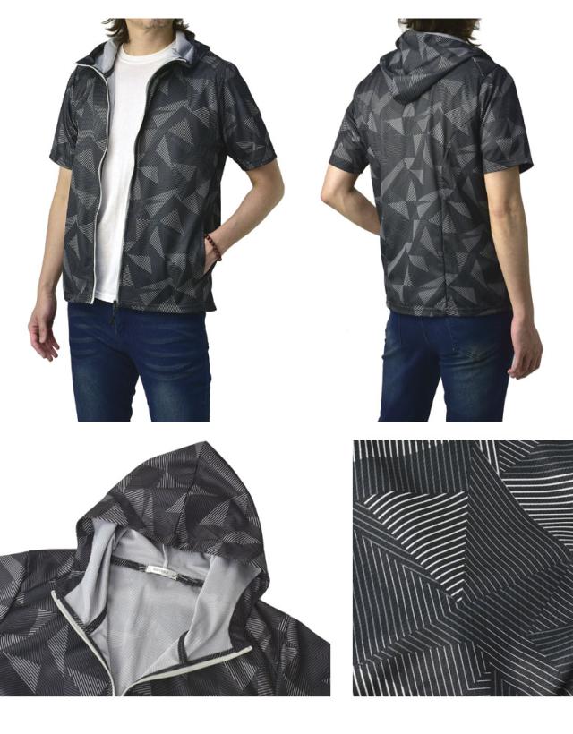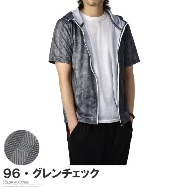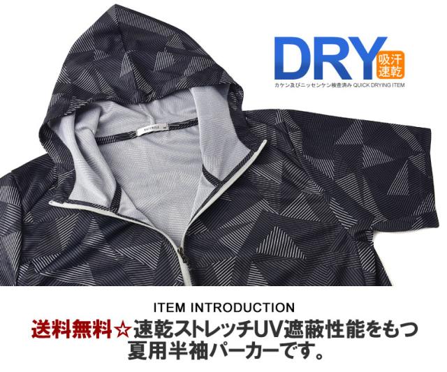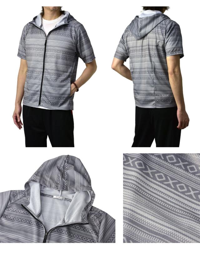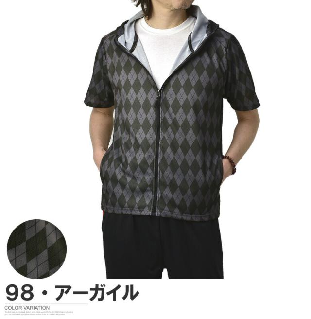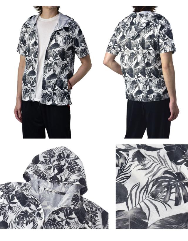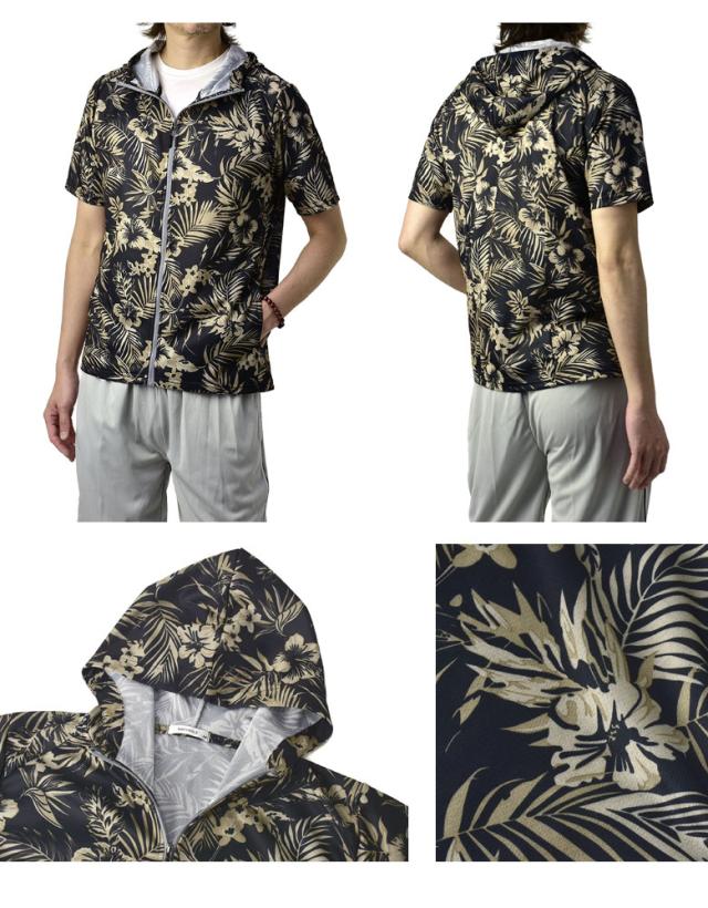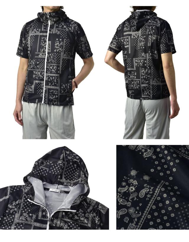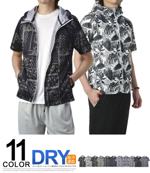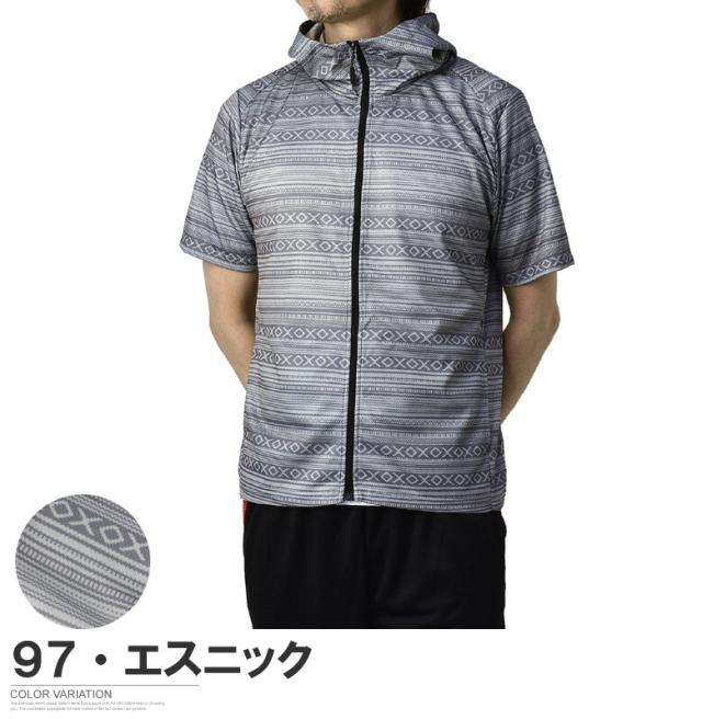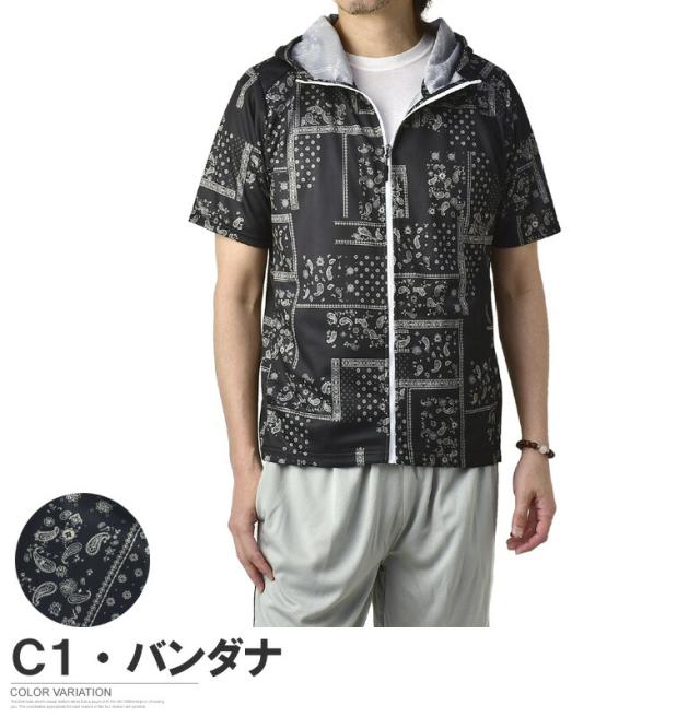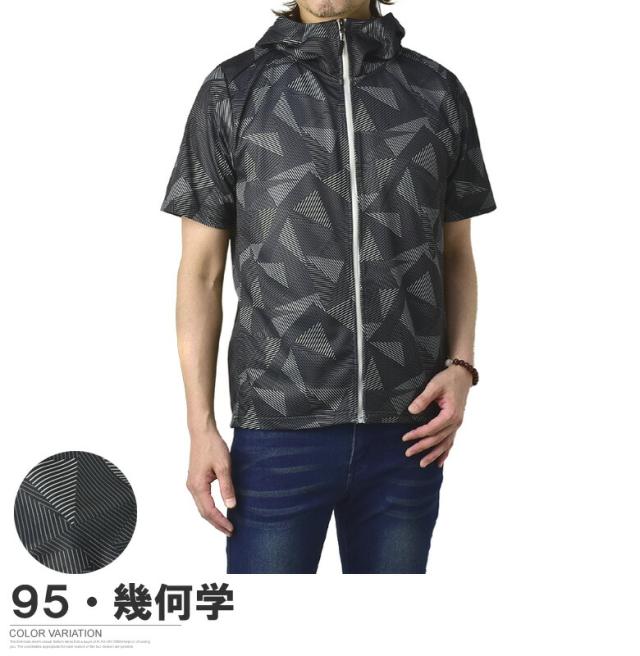 吸汗速乾 パーカー 半袖 ドライ ジップアップ メンズ 総柄 セットアップ可能【A0F】【パケ1】