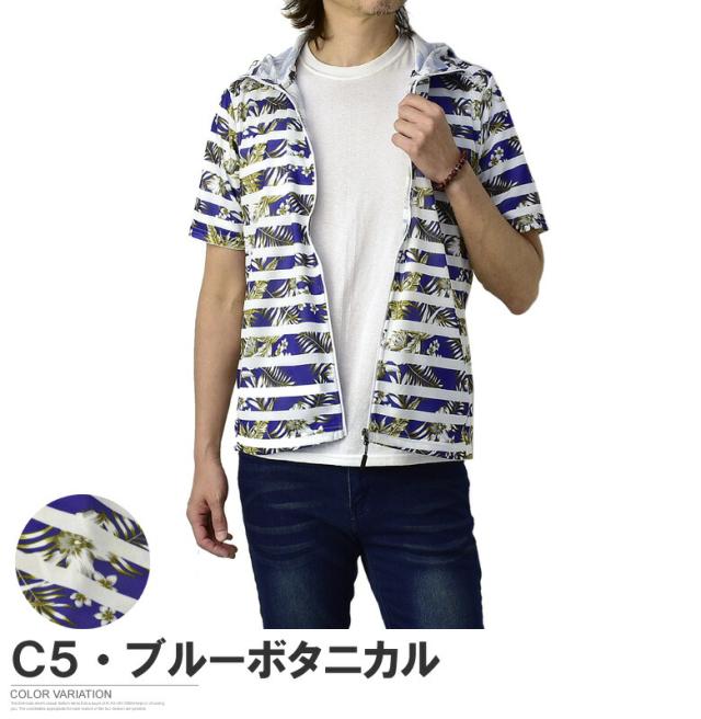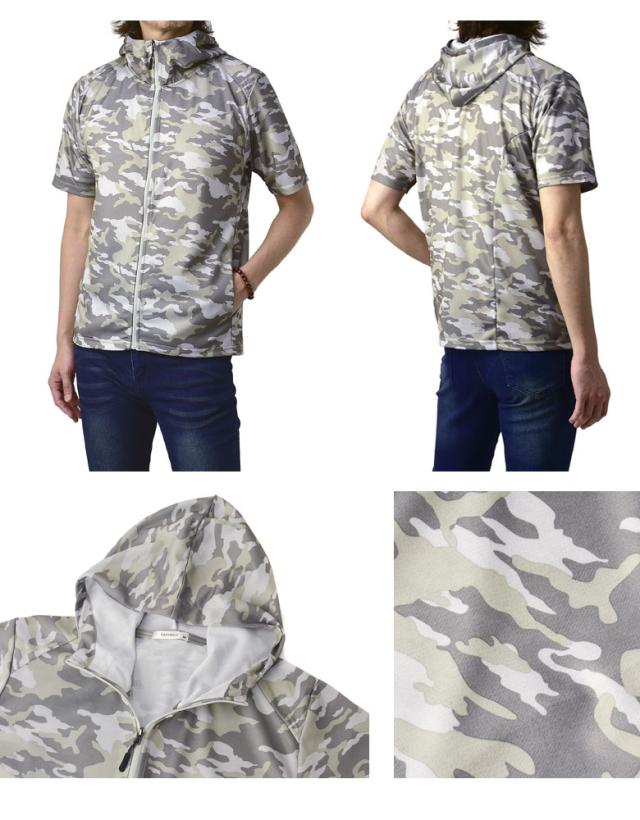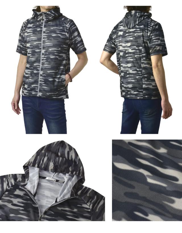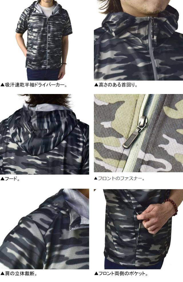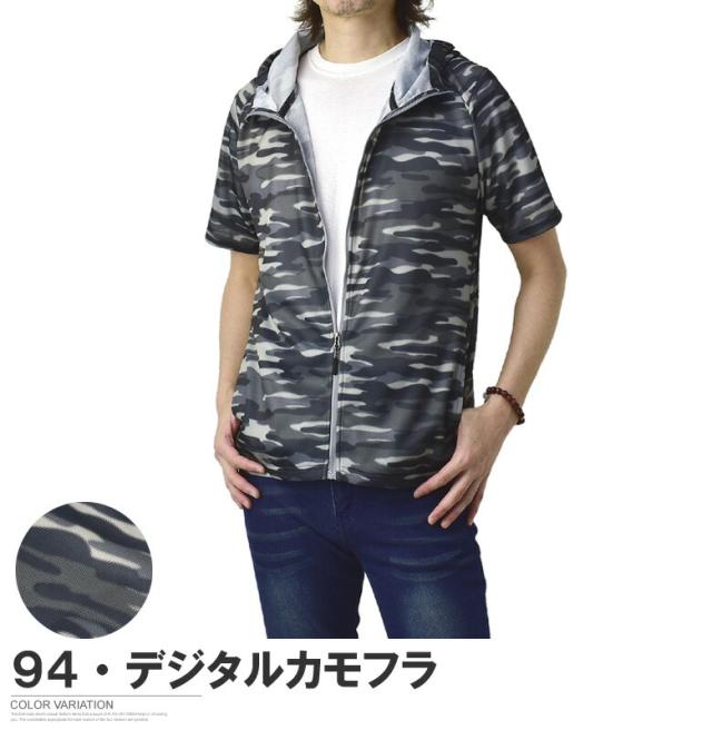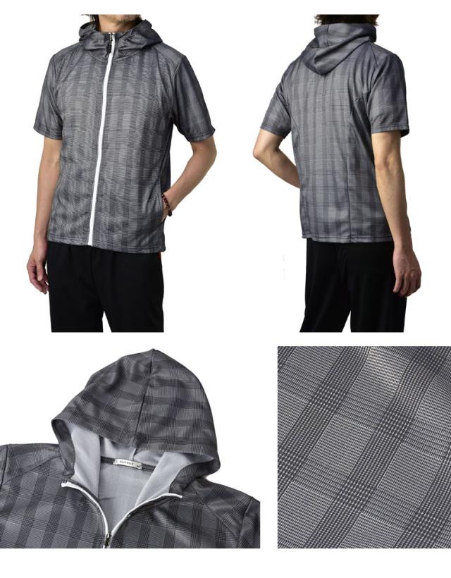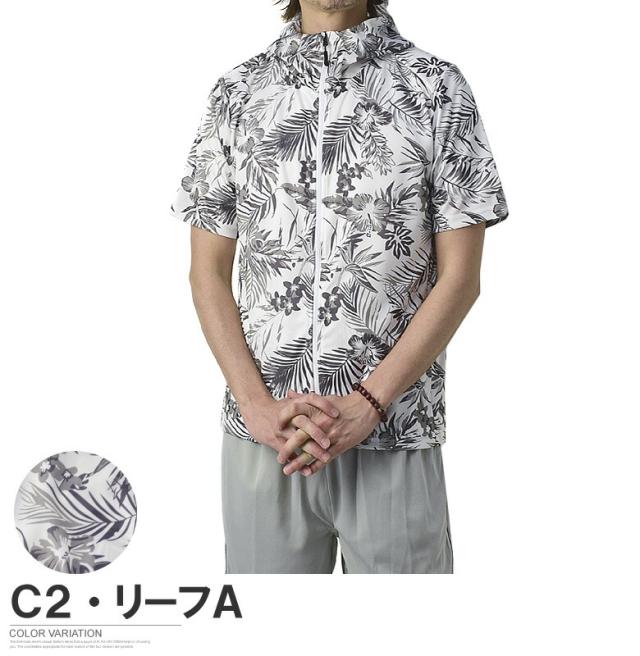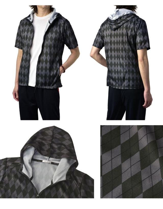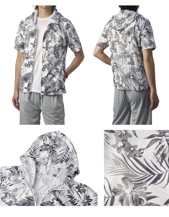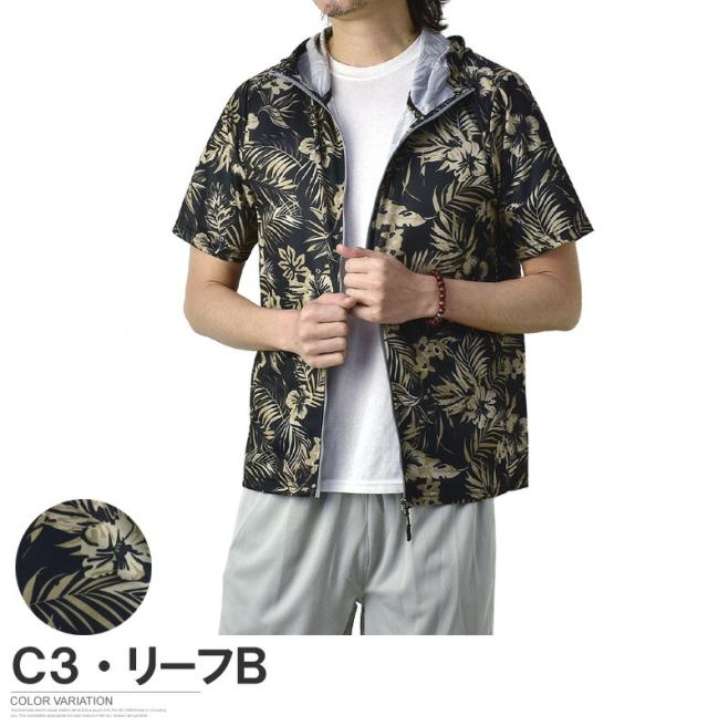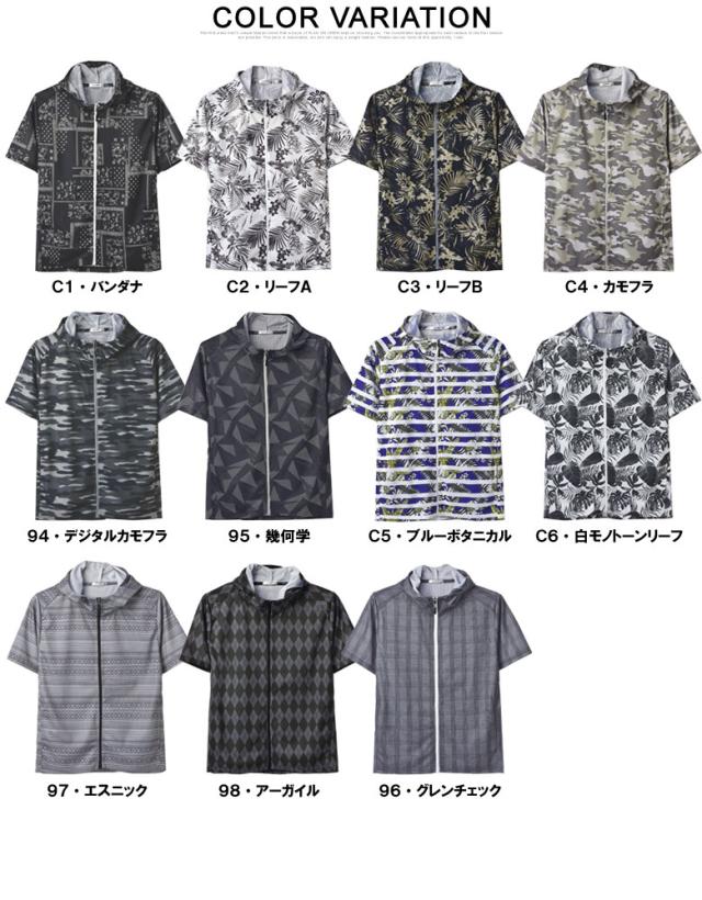 吸汗速乾 パーカー 半袖 ドライ ジップアップ メンズ 総柄 セットアップ可能【A0F】【パケ1】