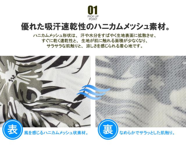 ハニカムメッシュ形状は、汗や水分をすばやく生地表面に拡散させ、