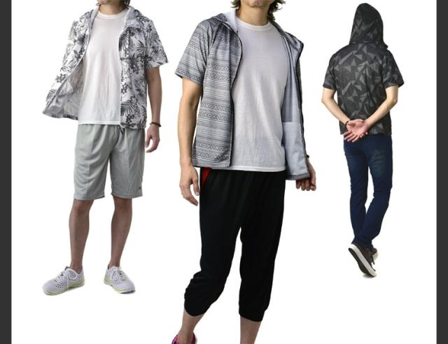 送料無料☆速乾ストレッチUV遮蔽性能をもつ夏用半袖パーカーです。