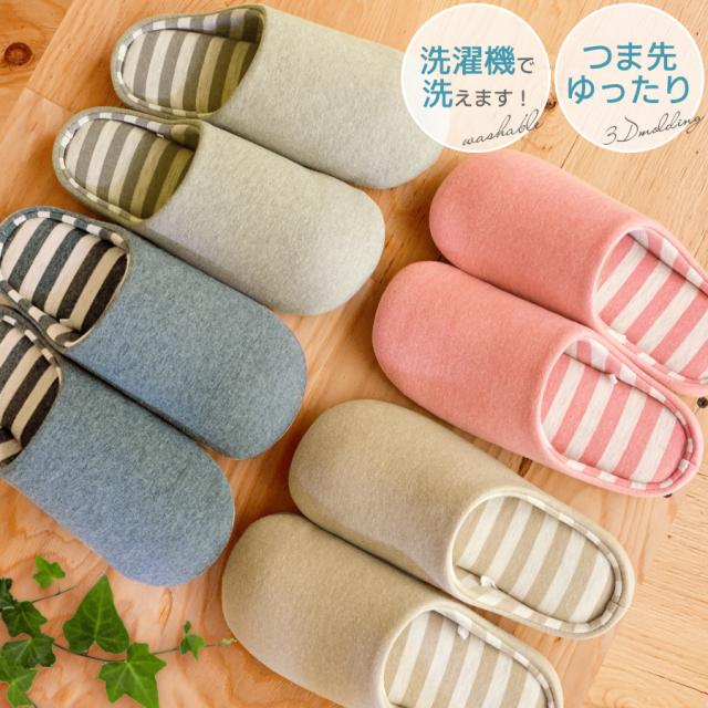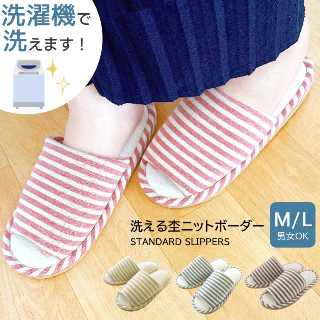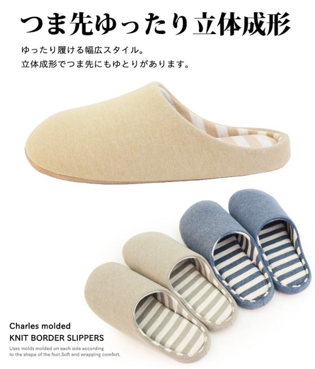 スリッパ 洗える 洗濯機で洗える つま先 ゆったり 幅広 立体成形 快適 おしゃれ ニットボーダー スリッパ (ok-nb6924) レディース メンズ 来客用 ルームスリッパ ルームシューズ 部屋履き 在宅勤務 会社 お洒落なニットボーダー成形チャールス agesugi_snk