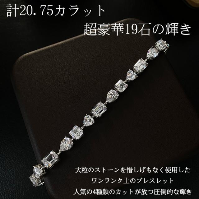 超豪華19粒 計20.75カラット ブレスレット クリスマスプレゼント 女性 レディース プラチナ仕上 シルバー925 彼女 妻 嫁 娘 母 40代 50代 60代 30代 ギフトラッピング対応 クリスマス_wp