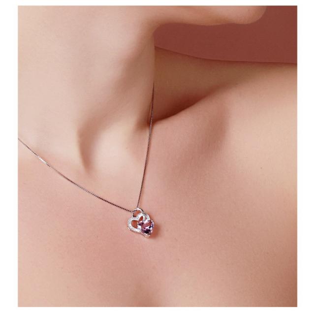2月誕生石アメジスト、ハートモチーフネックレスペンダント