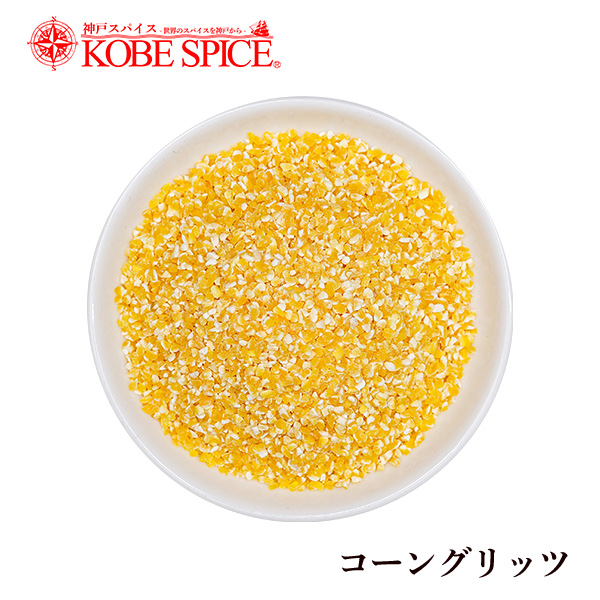 トウモロコシの種皮と胚芽を除去して胚乳を砕いて作られた穀粒です。コーンミール、コーンフラワーよりも粒が荒いのが特徴です。コーンブレットやコーンフレークの原材料、イングリッシュマフィンのトッピング、ビールや焼酎の醸造用としてよく使用されています。■商品名:コーングリッツ