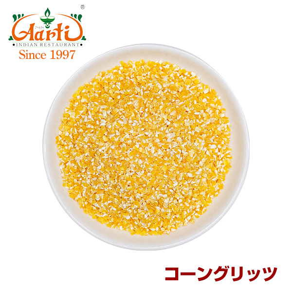 トウモロコシの種皮と胚芽を除去して胚乳を砕いて作られた穀粒です。コーンミール、コーンフラワーよりも粒が荒いのが特徴です。コーンブレットやコーンフレークの原材料、イングリッシュマフィンのトッピング、ビールや焼酎の醸造用としてよく使用されています。