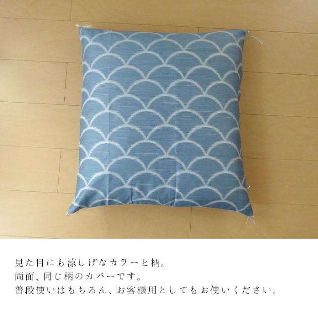 日本製 麻混 座布団カバー 八端判 八反判 夏用 59×63cm せいかいは 青海波 M便2 2122-1809-8700