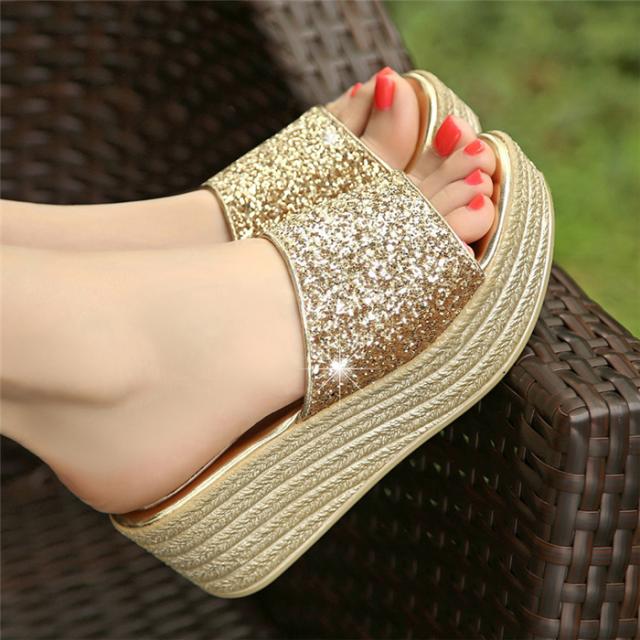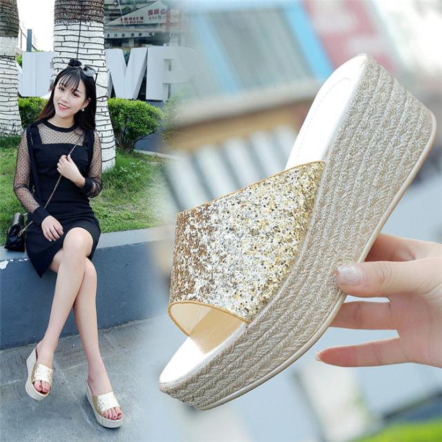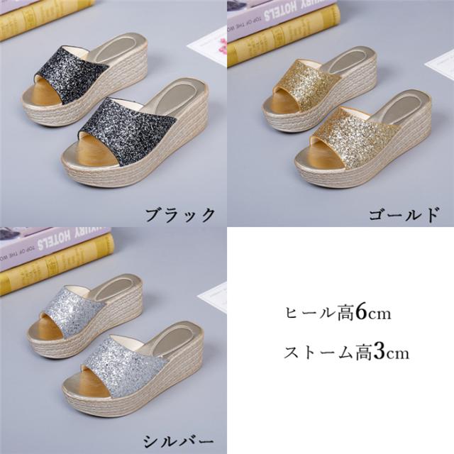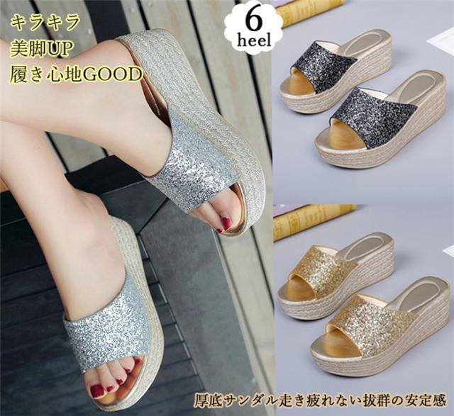 6cmヒール レディース サンダル 厚底 ウェッジソール おしゃれ ミュール ウェッジサンダル 履き心地よい シューズ 夏 ビーチサンダル キラキラ 厚底 レデ 痛くない