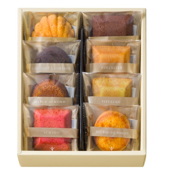 内容量:メープルアーモンドケーキ×1,いちごバターケーキ×1,チョコオレンジケーキ×1,マドレーヌ×1,フィナンシェ・ピスタチオ×1,りんごバターケーキ×1,フィナンシェ×1,フィナンシェ・ショコラ×1
