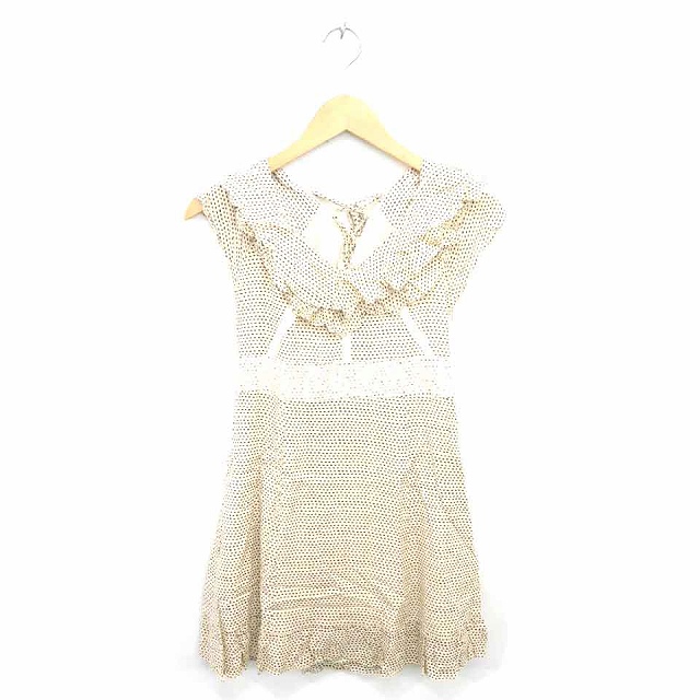 【中古】マーキュリーデュオ ワンピース ひざ丈 総柄 レース Vネック フリル 薄手 半袖 F ベージュ ブラック