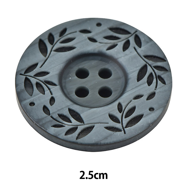 [ぼたん 釦 リーフ模様 植物 ボタニカル 4穴 4つ穴 グレー 灰色]