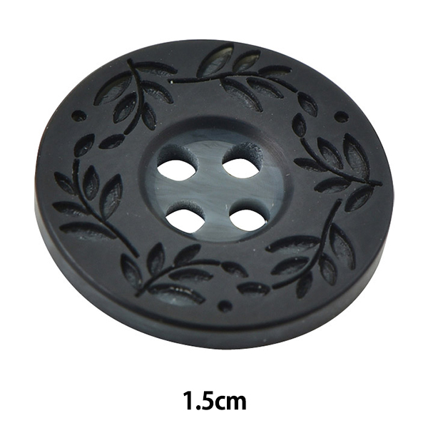 [ぼたん 釦 リーフ模様 植物 ボタニカル 4穴 4つ穴 ブラック 黒]