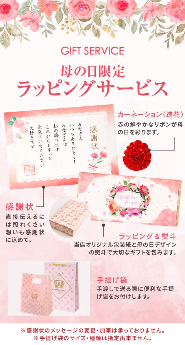 - 無事母の日にコーヒー届き安心しました。風呂敷に包み高級感ある中身で母も私も大変よろこびました。母にありがとうと言いながらコーヒーを渡せて良かったです。本当にありがとうございました。