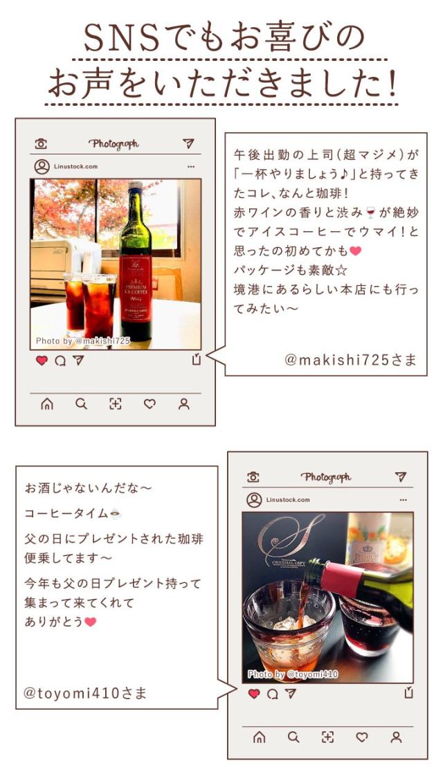 - ワインのようなコーヒーです。おしゃれ!でお中元に購入しました。