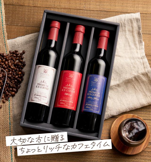 お歳暮 アイスコーヒー ギフト プレミアム アイスコーヒー 選べる 500ml 3本 カフェインレス デカフェ 送料無料 澤井珈琲ギフトセット 高級 coffee gift プレゼント ギフトセット 贈答品 御歳暮 冬ギフト
