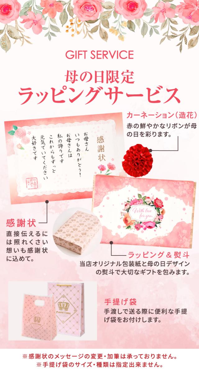 | 澤井珈琲のプレミアムアイスコーヒーセットは、3種類の中からコーヒーを選べるギフトセットです。無添加で安全、贈り物に最適な高級感のあるパッケージが魅力です。 1. 無添加で安全なコーヒー 澤井珈琲のプレミアムアイスコーヒーは、保存料、着色料、香料を一切使用していない安全な商品です。また、中国産の原料は使わず、全て国内で加工されています。このように、安心して楽しめる品質の高さが魅力です。安全性を重視した製造過程により、プレゼントとしても自信を持って贈ることができます。特に健康を気遣う方々やお子様のいる家庭でも安心してお召し上がりいただけます。 2. 5つの味わい このセットには5つの異なる味わいが含まれています。「ビターワイニー」は深い苦味とコーヒー本来の甘さが特徴です。「ワイニー」はフルーティーな香りと甘みがあり、後味がすっきりしています。「プレミアムアイス」は濃厚なのに雑味も苦味もないまろやかな味わいです。「カフェインレス」は豊かな香りと心地よい苦味を楽しめるコーヒーです。「カフェオレベース」は牛乳で4倍希釈を基準に割るだけで本格的なカフェオレが楽しめます。それぞれの味わいが異なるため、飲み比べを楽しんだり、気分や時間帯に合わせて選ぶことができます。 3. 高級感のあるパッケージとギフト対応 澤井珈琲のプレミアムアイスコーヒーセットは、高級感のあるシンプルな箱に入っています。無料のギフトサービスとして、オリジナルの包装紙でラッピングし、手提げ袋も付いてきます。このため、特別な日のプレゼントやお祝いの品としても喜ばれます。手間をかけずに高品質なギフトを贈ることができるので、大切な方への贈り物として最適です。 | |