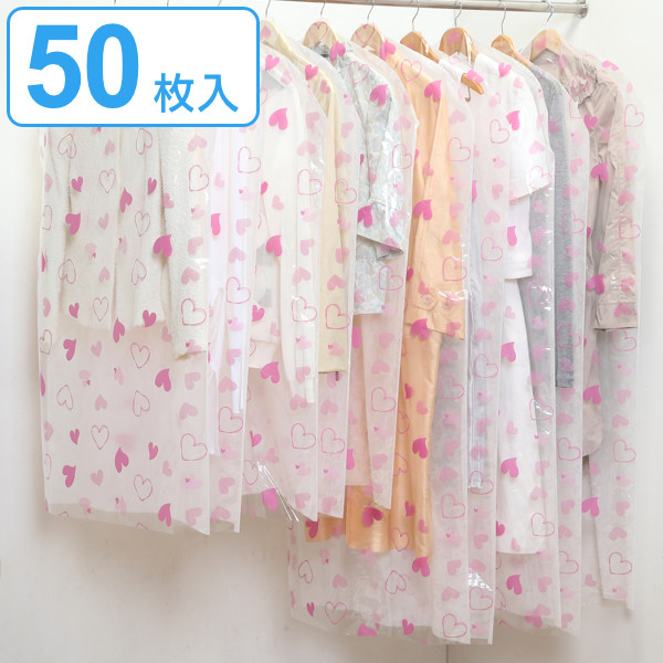洋服カバー 50枚入 ティッシュ式 ハート柄 ( 衣類カバー ショート ロング 収納 衣類収納 洋服 衣類 カバー 不織布 日本製 衣類収納袋 収納袋 消臭加工 消臭 加工 スーツ ジャケット ワンピース 用 )