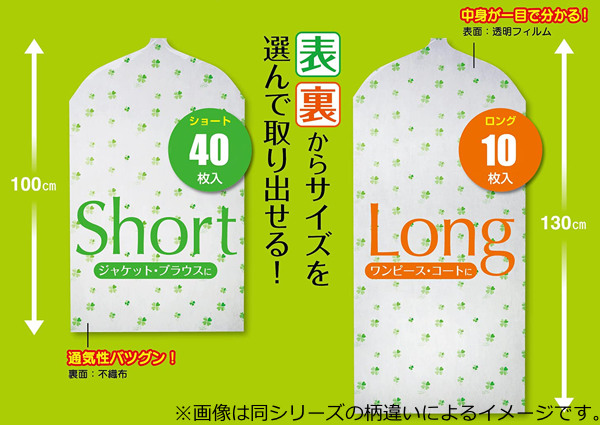 表面は中身がひと目で分かる透明フィルム、裏面は通気性がよく湿気のこもりにくい不織布です。さらに消臭加工により消臭力が持続しますので、長期間クローゼットにしまった衣類もニオイの心配がありません。