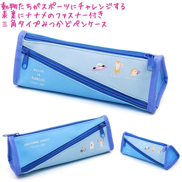 筆箱 ペンケース 三角 タイプ 女の子 向け みつかど Challenge Sports スポーツする動物 小学生 中学生 高校生 大学生 大人 一般 クラックス