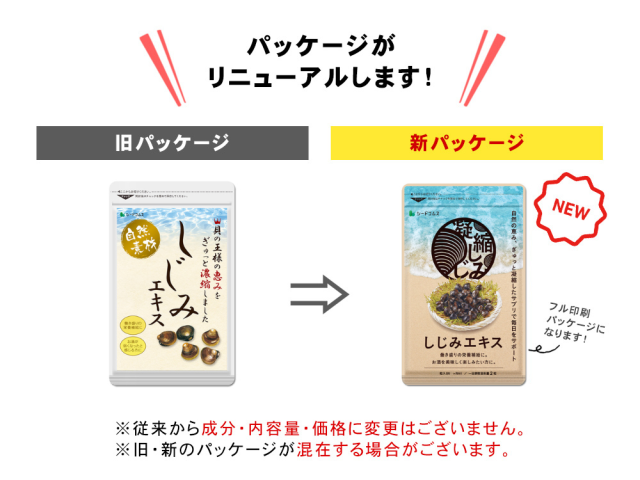| 原材料 | シジミパウダー(デキストリン、シジミ、食塩)(国内製造)、デキストリン、カキガラ末/微結晶セルロース、ステアリン酸カルシウム、微粒二酸化ケイ素、調味料(アミノ酸等) |