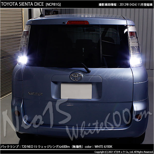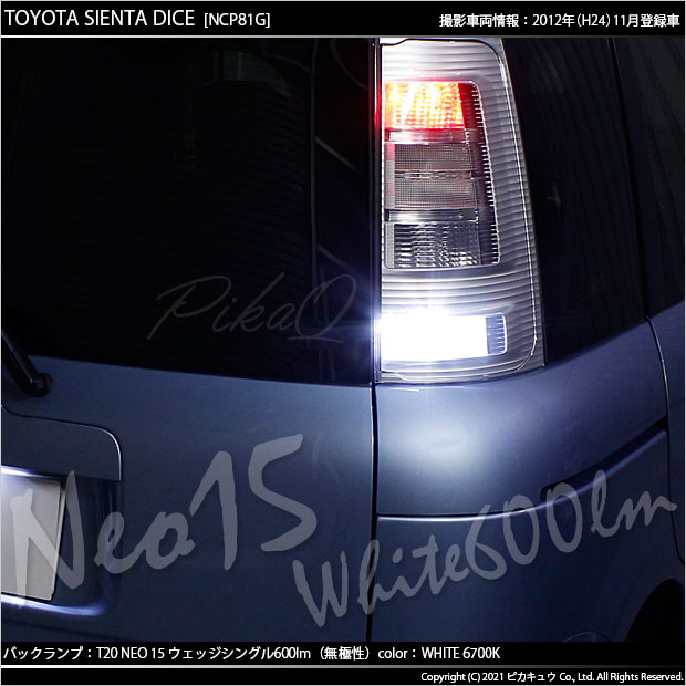 ピカキュウ,LED専門店,LEDバルブ,LED,SMD,T20S,T20シングル,バックランプ,DC12V車,NEO15,ホワイト,全光束600lm,定電流回路搭載,ハイブリッド車対応,トヨタ,初代シエンタ,シエンタ,TOYOTA,SIENTA,NCP81G,NCP85G,NCP80系