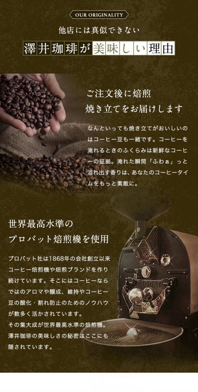 澤井珈琲(さわいこーひー)では、お客様のお家に商品が届き、箱を開けた瞬間。そして、トレードマークの赤いコーヒー袋の封を開けた時に鮮度抜群の「香り高さ」と、飲んだときの「味わい」に感動して頂けるように、レギュラーコーヒーはご注文を頂いてから焙煎をして焼きたてのコーヒー、コーヒー豆、珈琲、珈琲豆をお届けをしている焼き立て珈琲専門店です。お客様に「美味しい」と言って喜んで頂く事が私たちの喜びと思ってます。「美味しいコーヒーをお届けしたい」と想い続けて生まれたこだわりの味を、どうぞ、この機会にお楽しみくださいませ。澤井珈琲では、コーヒー豆は挽き方がご選択いただけます。珈琲豆を挽く事をお楽しみ頂ける『豆のまま』や、私共の専用の特注サイズの大型のミルで挽いて、コーヒー粉の状態にしてお届けする方法がございます。中挽き、細挽き、粗挽き、荒挽きなど様々な挽き方がございますが、私共がお薦めする『店長のおすすめ挽き』にて、そのコーヒーに合った一番美味しいと思える挽き方に挽いてお届けします。東京の銀座にも実店舗を構え、都内では浅草やスカイツリーのあるソラマチにも出店。「鳥取のコーヒー屋さん」とも呼ばれてますが、空気が綺麗で自然豊かな鳥取県に焙煎工場を構え、隣接する島根県の松江市や出雲市にも実店舗がございます。顔の見えないネット通販ですが、全国11店舗を展開する安心安全な澤井珈琲は、特徴的な「赤いコーヒー袋」に入れて、全国の珈琲好きにお選び頂いてます。よく間違えられる名前として、沢井珈琲、沢井コーヒー、澤井珈琲店、澤井珈琲本店、さわいこーひー、サワイコーヒーなどがございますが、正式名称は澤井珈琲となります。