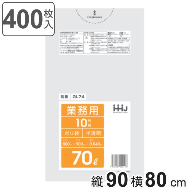 ゴミ袋 70L 90×80cm 厚さ0.04mm 10枚入 半透明 10袋セット GL74 ( ポリ袋 70 リットル 100枚 つるつる ゴミ ごみ ごみ袋 まとめ買い LLDPE キッチン 分別 袋 ふくろ 強度 やわらかい 伸びる 掃除 清掃 )