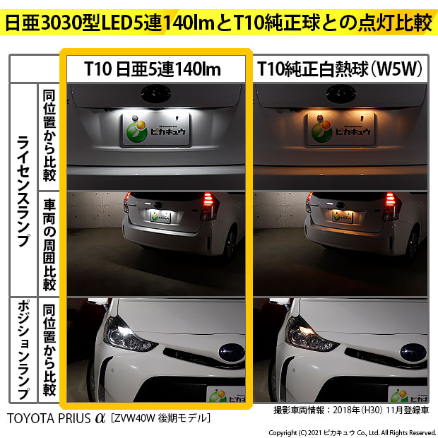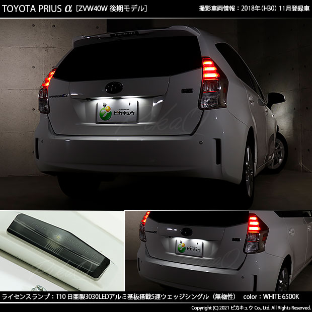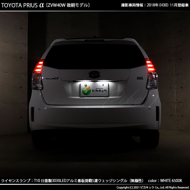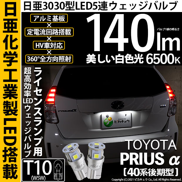 ピカキュウ,LED専門店,LEDバルブ,LED,SMD,T10,W5W,日亜化学工業,日亜,3030,ライセンス,番号灯,爆光,140lm,140ルーメン,トヨタ,40系プリウスアルファ,プリウスα,TOYOTA,PRIUSα,ZVW40W,ZVW41W,後期