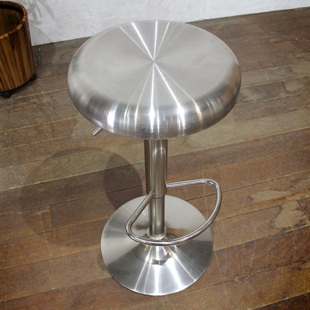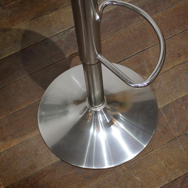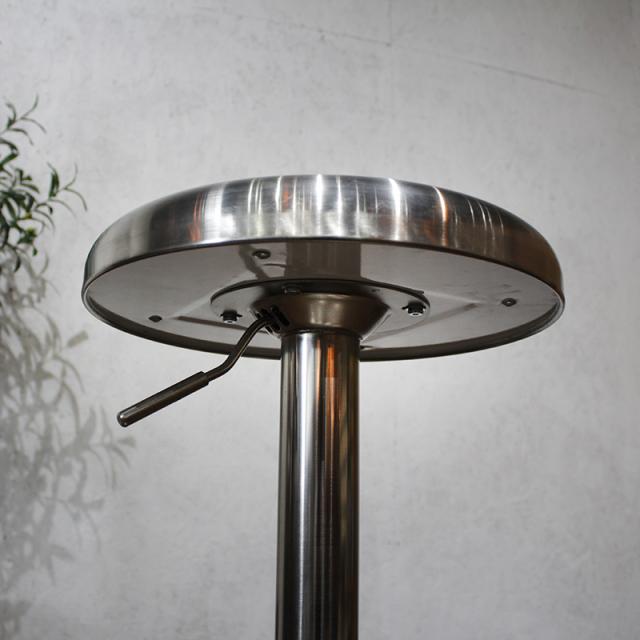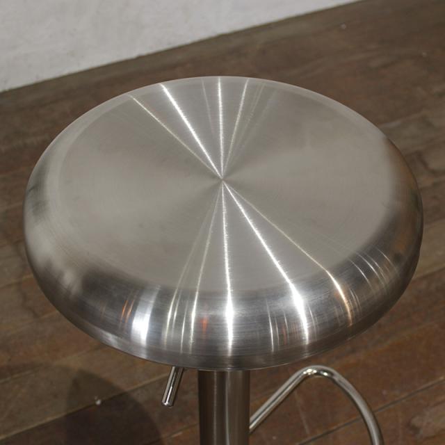 工業製品のような重厚さを活かしつつ、日常で使えるようにデザインされたステンレス製のバーチェア。