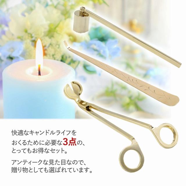 送料無料 ろうそく消し 3種セット 芯切 金色 エレガント ギフト