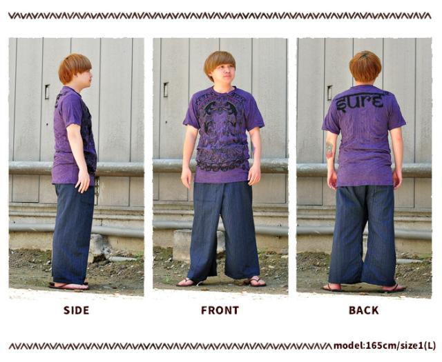 大人気の神様、ガネーシャをサイケデリックに描いたプリントが強烈な存在感を放つTシャツの登場!シワ感のあるやわらかなコットン生地でゆったりとしたサイズ。袖口や首周りは切りっぱ&数枚、生地が重なっているラフな仕立てで個性的な印象に◎インパクトと、身体のラインをゆったり覆う体型カバー効果で、一枚でも完成されたスタイルが楽しめちゃいますよ♪