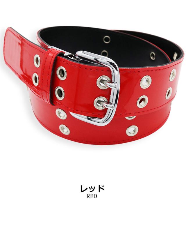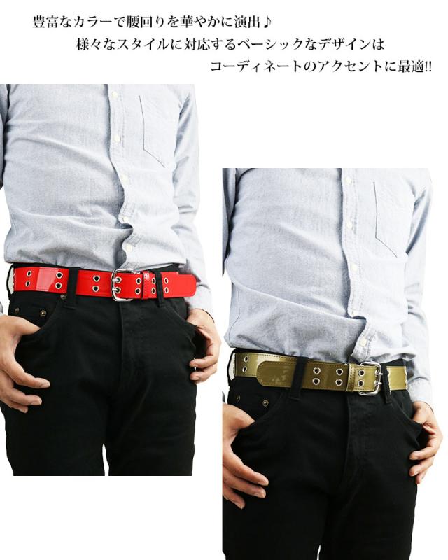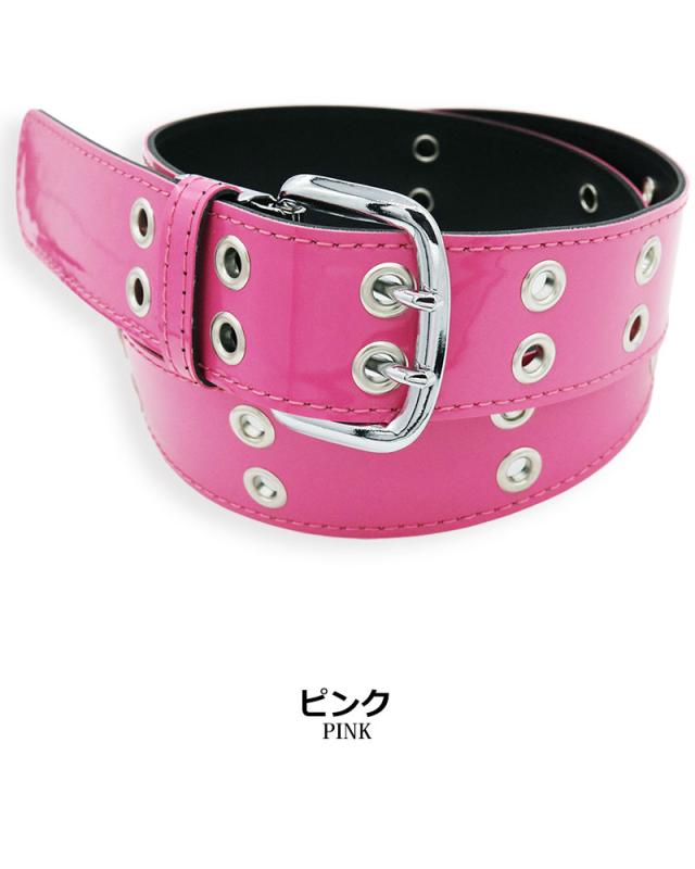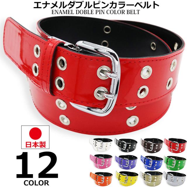 ベルト メンズ レディース 日本製 エナメルベルト カラーベルト カラフル ダブルピン ロック パンク