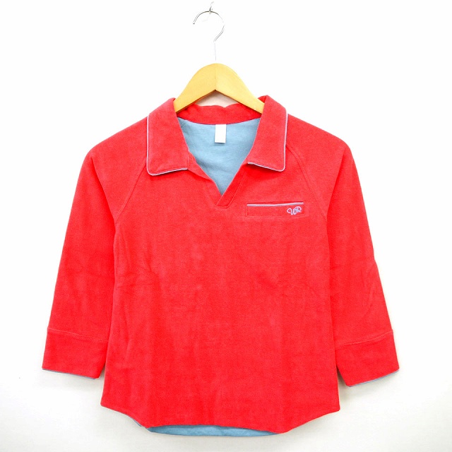 【中古】ダブルアール WR シャツ ブラウス ロゴ刺繍 Vネック 長袖 コットン 綿 ピンク ライトブルー /MT33 レディース