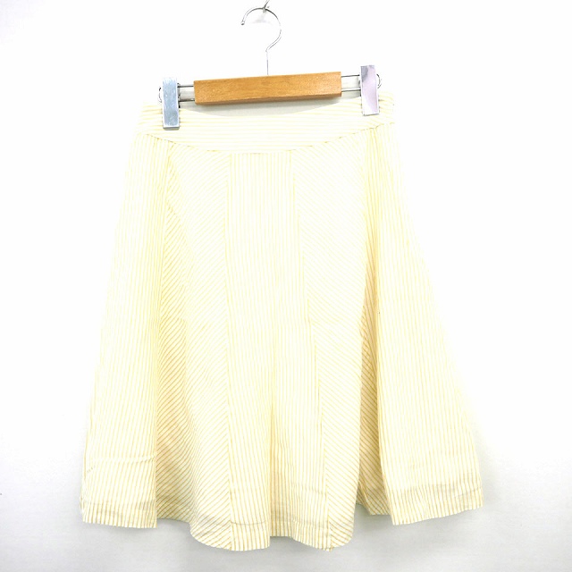 【中古】ルージュディアマン ROUGE DIAMANT スカート ボトムス フレア ストライプ ひざ丈 コットン 綿 36 イエロー
