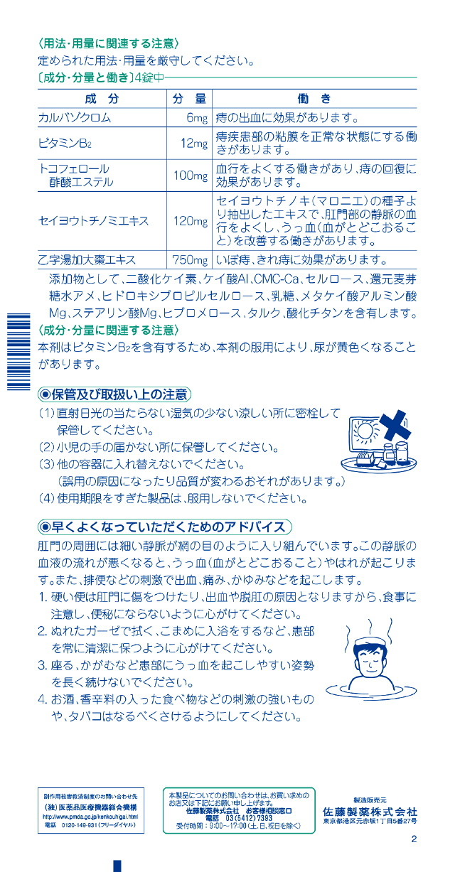つらい痔の出血に血管強化薬カルバゾクロムを配合。弱った血管を丈夫にし、痔による出血を防ぎます。
