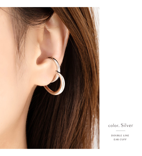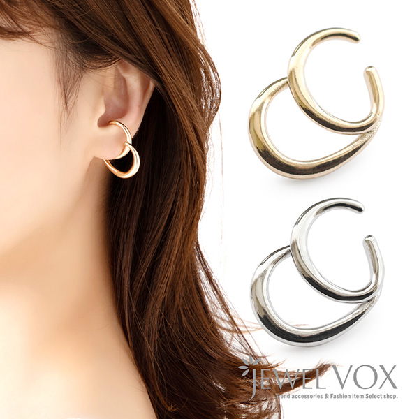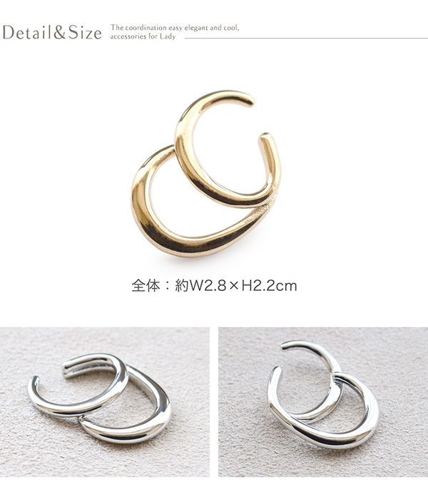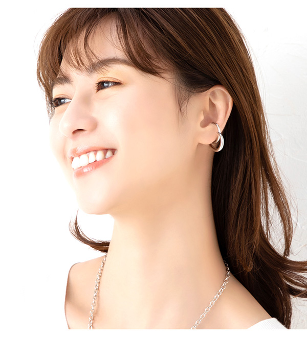 | 耳の上部と軟骨部分を挟むように引っ掛ける片耳用のウェアリング(イヤーカフ)です。 2種類のメタルリングを絶妙なバランスで重ね合わせたようなスタイリッシュなデザイン。 存在感のあるサイズと立体感のあるフォルムで、コーディネートのアクセントにぴったり。 | |