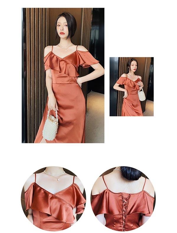 ブライズメイド ドレス ロング丈 ロングドレス 袖付き 袖なし キャミソール オフショルダー 4タイプ グリーン オレンジ 結婚式 ワンピース 体型カバー 無地 光沢 シンプル 編み上げ 巻きスカート 謝恩会 二次会 卒業式 花嫁 ピアノ 発表会 ドレス 演奏会 20代 30代 dw225zezes3