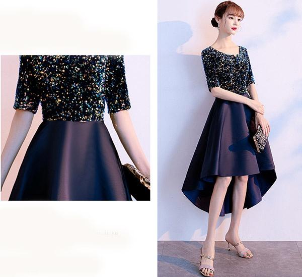 パーティードレス フィッシュテール 二次会 結婚式 ワンピース 大人 ピアノ 発表会 結婚式 母親 ドレス フォーマル 5分袖 スリットネック Aライン 披露宴 お呼ばれ 演奏会 同窓会 謝恩会 卒業式 入学式 ネイビー 大きいサイズ da860s1s1s3